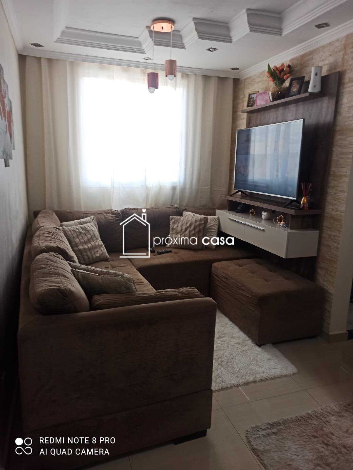2 quartos, sala, cozinha, área de serviço, vaga de garagem para 1 carro e uma moto.
